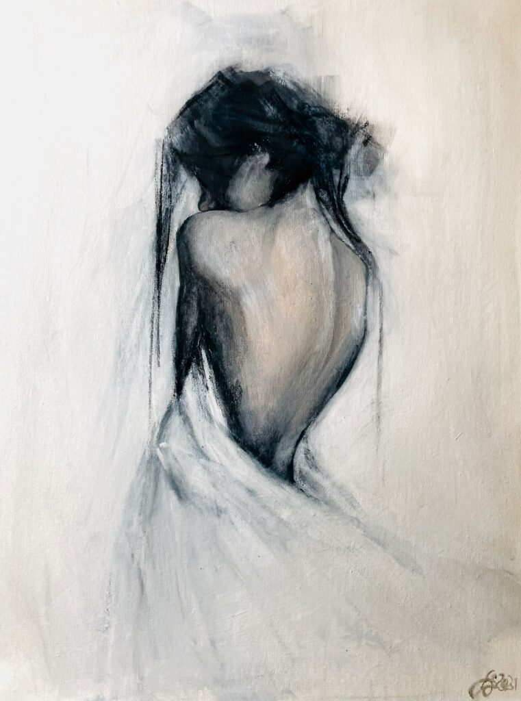 Akryylimaalauksissa käytän pääasiassa kanvaspohjia ja aiheenani on usein naishahmot tai eläimet. Otan vastaan myös tilaustöitä. Valmiit, myynnissä olevat teokset löydät täältä.